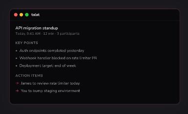 Talat’s AI meeting notes stay on your machine, not in the cloud